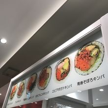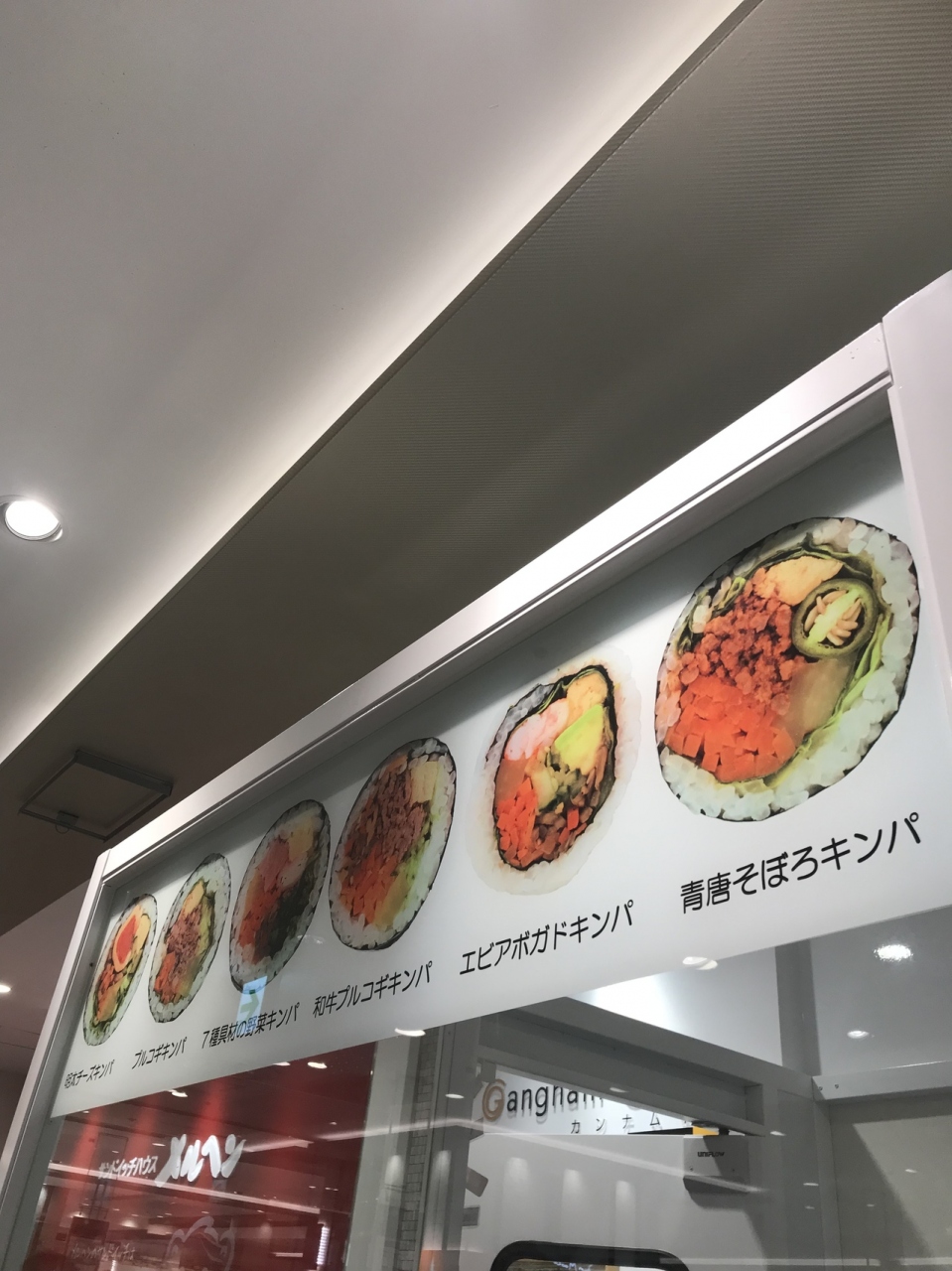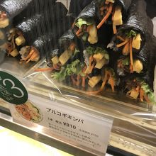 テイクアウト専門店で、数種類のキンパが販売されています。