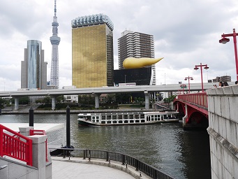 隅田川に架かる朱色の橋で、浅草のシンボルの一つです。隅田川を行きかう観光舟と橋の先にはアサヒビール本社やスカイツリーを眺めることが出来、一枚の絵のような場所です。浅草に来ると必ず渡る橋ですが、趣きが有り東京都の中で好きな場所の一つです。