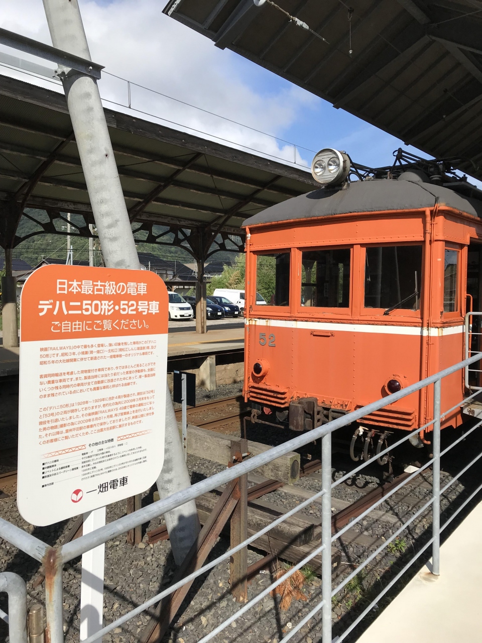 「デ」…電動車、「ハ」…普通車(イロハのハ、3等客車のこと)、「ニ」…荷物室つき、の意味だとか。一畑電車の象徴として脚光を浴びるようになった「デハニ50形」。昭和3年に「デハニ51号・52号」が、昭和4年に「デハニ53号・54号」が一畑電車オリジナルとして日本車両製造㈱で製造されました。木製の車体や日除け(鎧戸)、手動扉が特徴的でした。