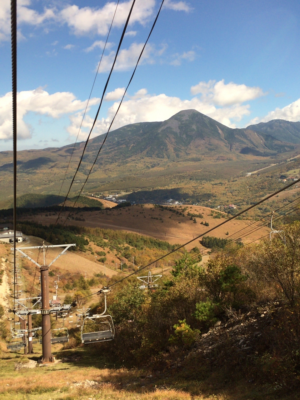 駐車場から一目瞭然のリフト乗り場。チケット売り場は、リフトの向かい側にある建物内で販売してます。麓から中腹までと中腹から1925mの頂上までの2段式です。麓から頂上までの往復セットで、大人1600円。子供1000円。幼児500円。繁忙期は、それぞれ+100円します。1台最大4人乗りのゴンドラ。紅葉が始まったか位の時期に行ったので、人は少なくて良かったですよ。ゴンドラに乗る前に、トイレの用を済ませておくと良いです。