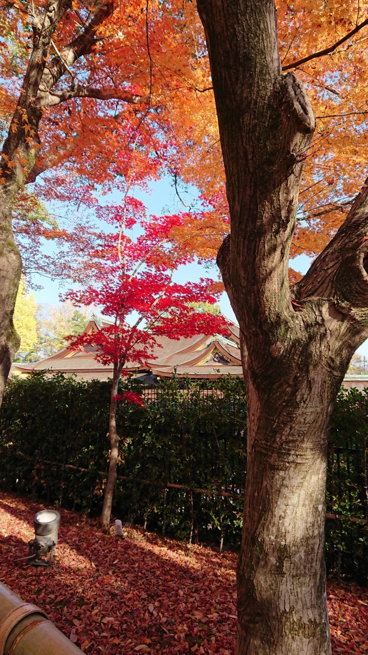 敷地内は広く、散策しながら赤や黄色に染まった紅葉を見る事ができます。