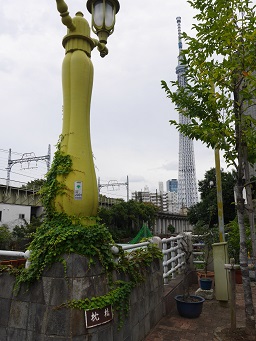 浅草の枕橋は墨田区役所の裏手に流れる北十間川に架かる小さな橋です。橋の手前には枕橋と呼ばれるようになった由来が掛かれた石碑が立てられています。橋の欄干に立てられた電燈が何とも趣きが有りスカイツリーとのアンバランスさが面白い。