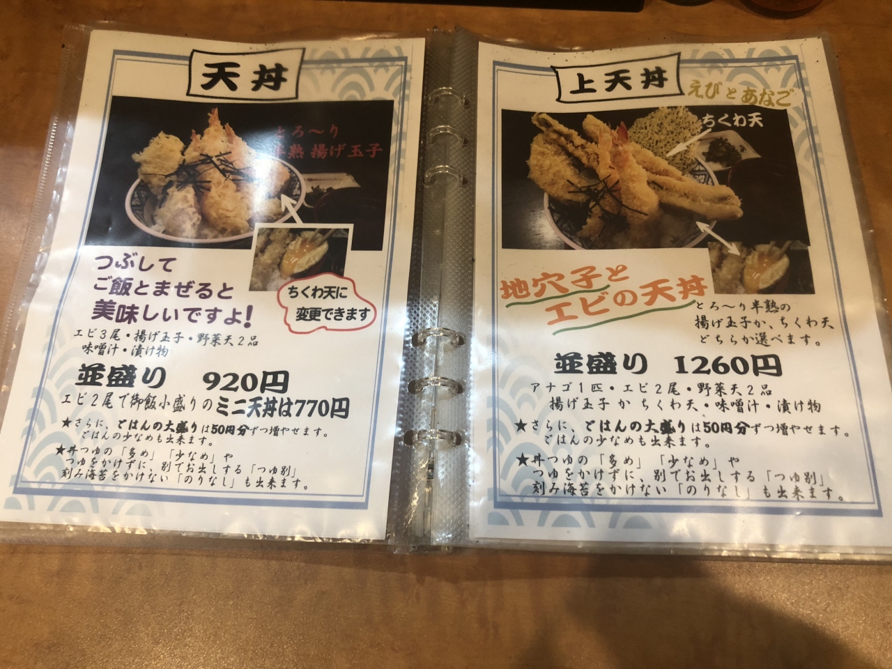 天丼並盛り(920円)。