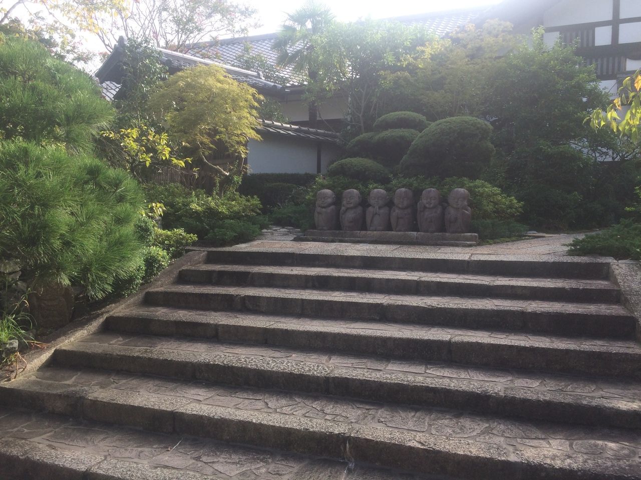 階段を数段上り、門がありまた数段の階段を上り少し高台にあります。正面に6つの小僧像が微笑んでいました。右側にも一つ小僧があり可愛らし姿でした。門より中は観光客は入ることが出来ず、門外から覗きましたが、お寺と言うより個人邸宅のような境内でした。
