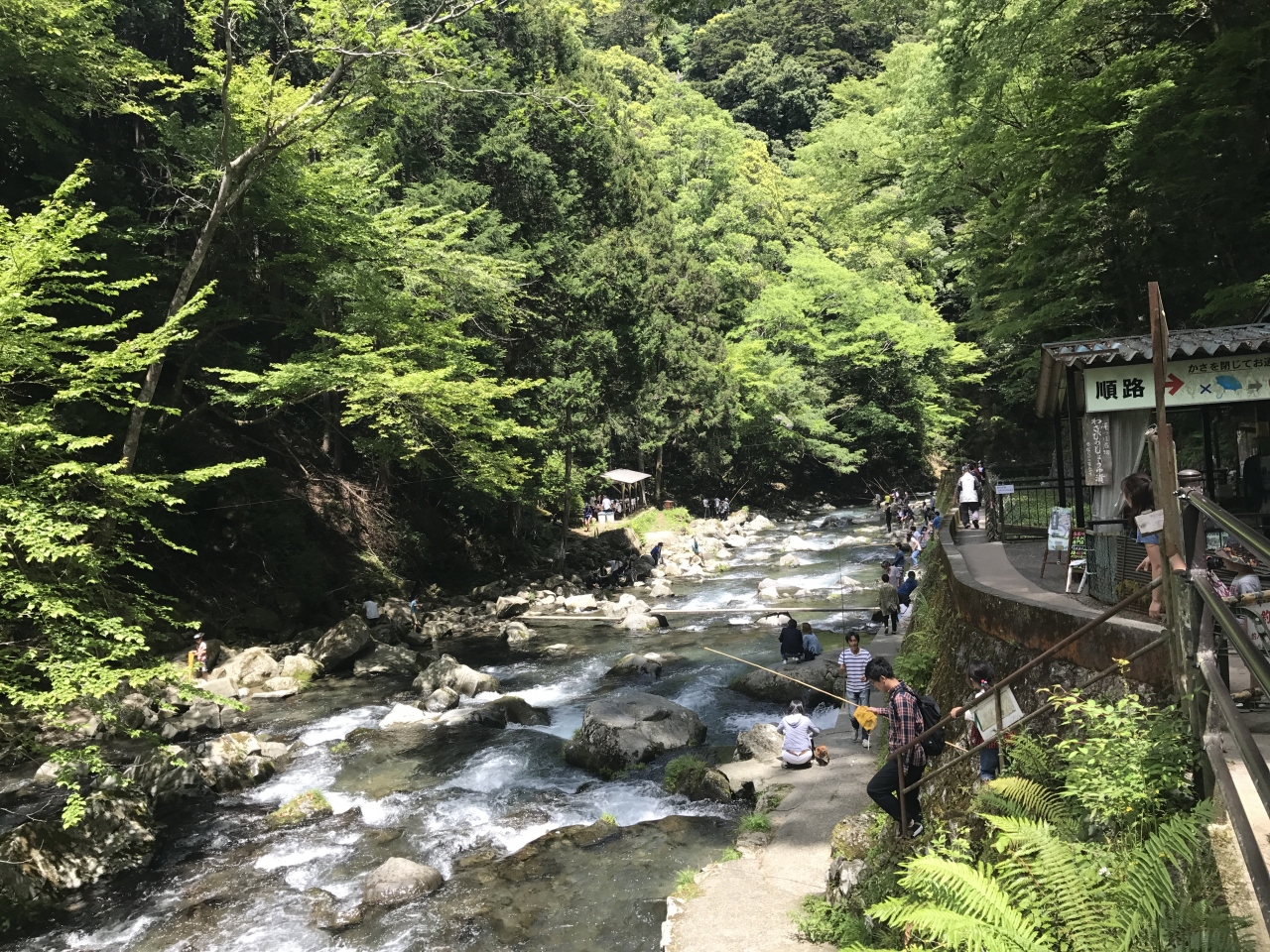 浄蓮の滝、滝見茶屋ときたら、滝の下流でオープンになっている釣り彫りに行くのがおススメです。釣竿などは料金に含まれているので、貸してもらえます。釣った魚はそのの場で焼いて食べることができてプチアウトドアが楽しめます。結構沢山の人が釣りをしていました。
