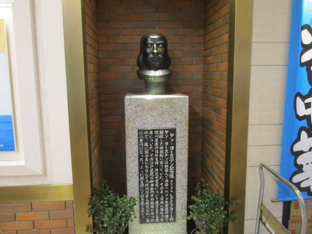 東京駅八重洲南口地下の1番通りにラーメン店「遊亀亭」と寿司店「魚じま」のすき間の壁に埋め込むような形でヤン ヨーステン記念像はあります。ヤン ヨーステンはオランダ人で江戸時代に幕府の外交政策の通訳として、また日本とオランダの貿易の発展のために力を尽くし、八重洲の名前の由来になった人だそうですので東京駅八重洲地下街に訪問の際は南蛮人らしい像を眺めにお立ち寄りをお勧めします。飲食店の隙間にあるためか素通りする人が多く像に気が付く人はほとんどいないようです。