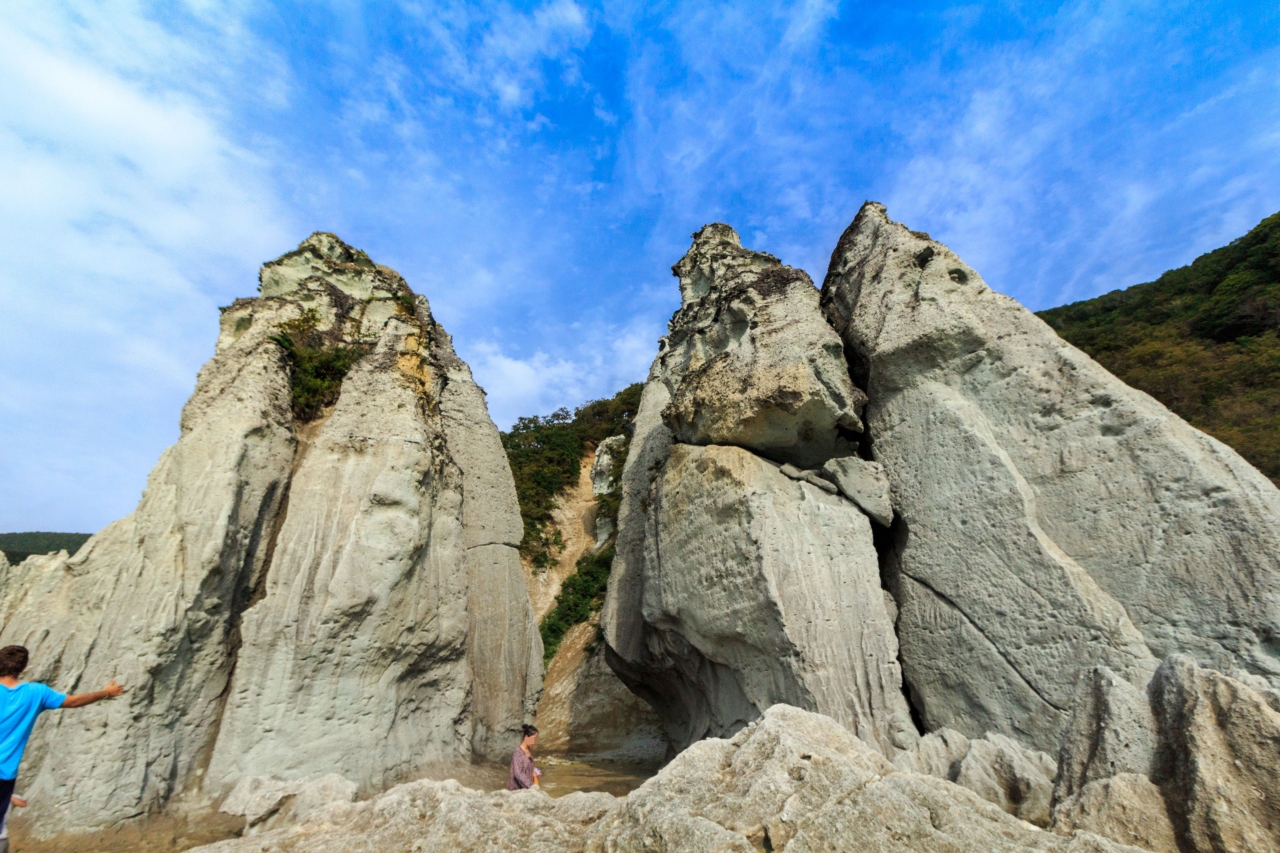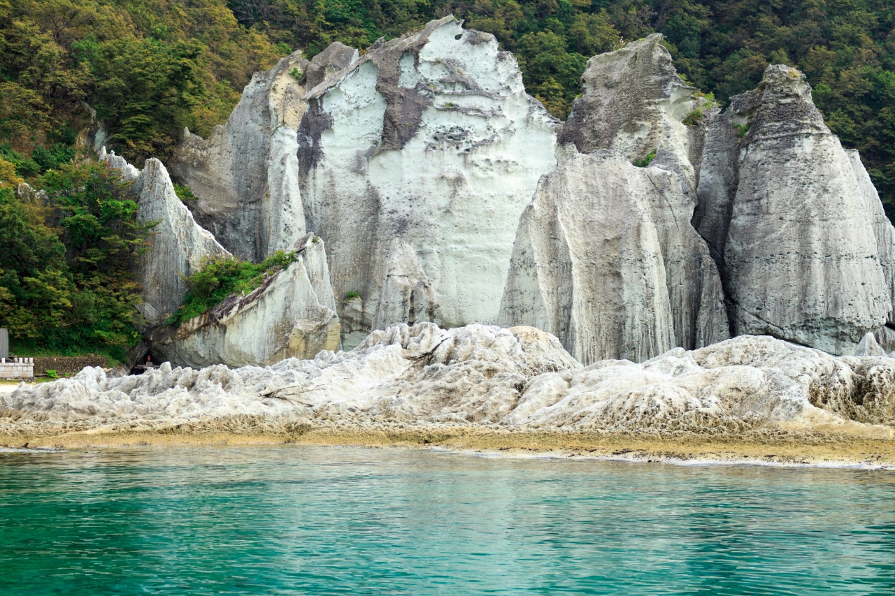 奇岩もさることながら、観光船が着く付近の海の青さがとても綺麗です