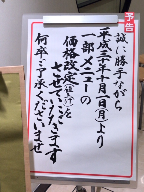 メニューは以下の4種類 金額が来月10/1より値上げ予定だそうです。
