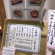その他ビールなどの飲み物、お好み寿司よりお寿司一種類ずつ注文できます。