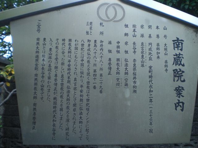 南蔵院は、真言宗豊山派に属し、山号は、大鏡山と号しています。