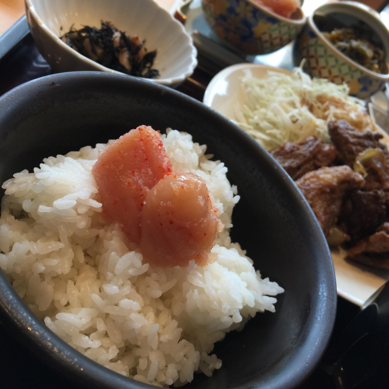 ランチセットに明太子と高菜の食べ放題が付いてお得です。1回転目に入ったせいかごはんが盛り置きで冷めていたのが残念でした。しかしごはんもお替りできるので明太子好きにはたまらないです。から揚げ定食は女性には食べきれない程のボリュームなのでお腹をすかせてご訪問ください。