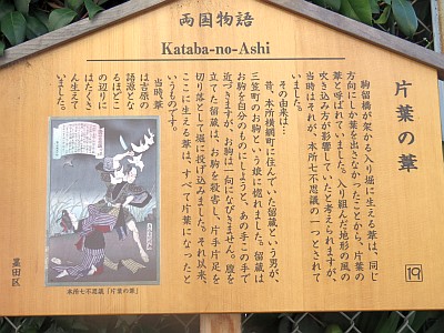 本所七不思議の一つとされていた片葉の葦ですが、説明板のみがあり、葦は生えていませんでした。「藤代町跡」と「駒留橋跡」の説明板と一か所に固めて並んでいるので、いっぺんに3つ見ることができるという点以外は訪れるメリットもなかろうかと思います。