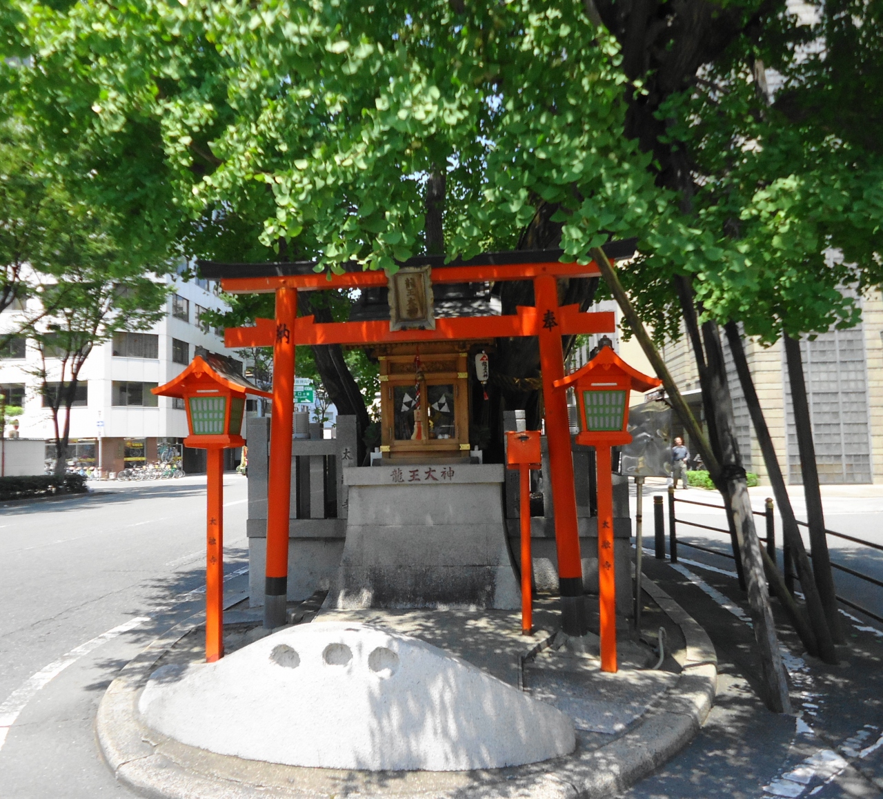 ご神木の大きなイチョウの下の社には、龍王大神(雄神)とあります。