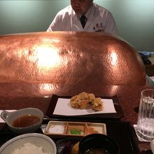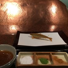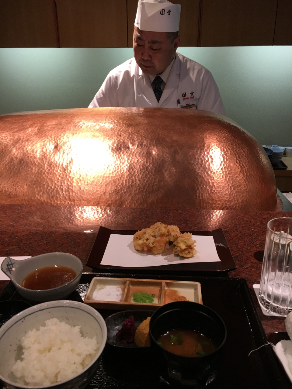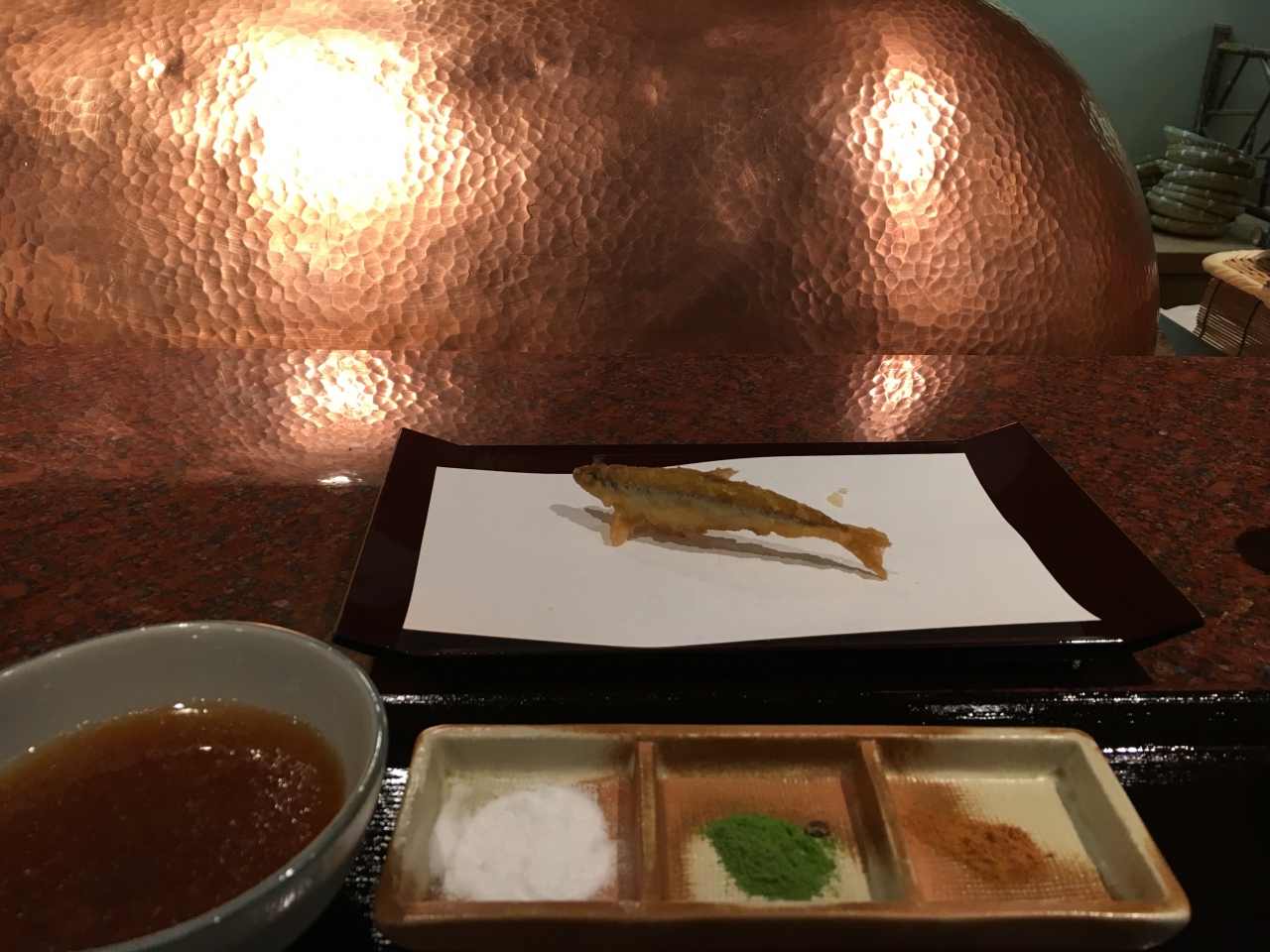 お店は落ち着いている観光地ではない場所にあって一品づつ順番に天ぷらがでてきました。