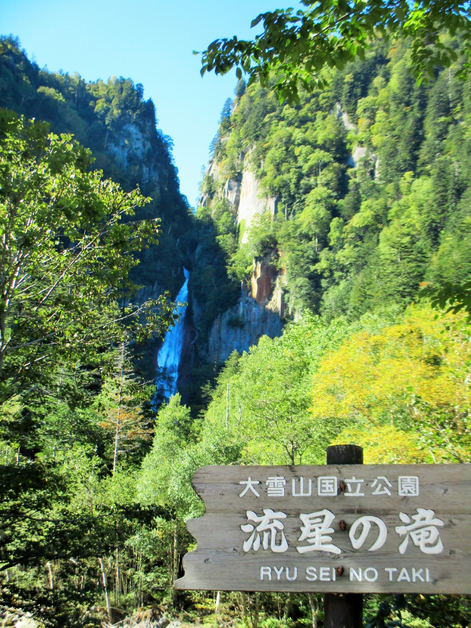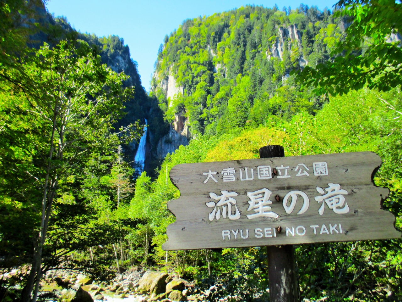 層雲峡温泉から大雪湖に向かって国道39号線を行くと右側に、銀河の滝の駐車場の看板があります。