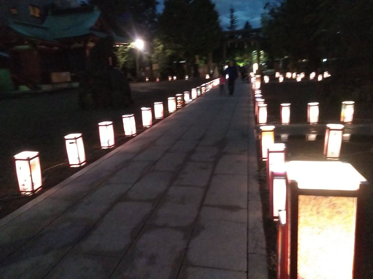 浅草寺の東側にひっそりあるのが浅草神社です。ここからはスカイツリーがよく見えます。浅草燈籠祭というイベントが2018年は9月15日(土)から9月29日(土)まで。日没からメッセージの書かれた綺麗な燈籠に灯がともり、浅草神社の参道がとても綺麗で幻想的でした。