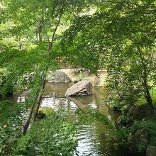 池には大きな鯉が泳ぎ、のんびりした雰囲気です。
