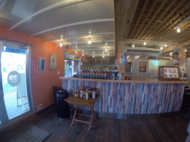 インスタ映えしそうなカラフルなドリンクと、ハワイ風のインテリアのカフェです。ドリンクの種類はかなり豊富で選ぶのに悩みます。食事のメニューは、タコライスとポテトのみです。