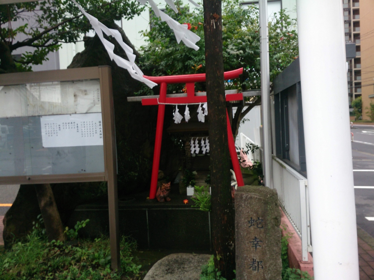 新横浜から10分ほど西へ線路沿いに歩いたァミリーマートの駐車場にポツンとあります。神社というよりは祠という感じでしょうか。後からコンビニが出来たんでしょうねえ。鳥居が白くちょっと不思議な雰囲気でした。