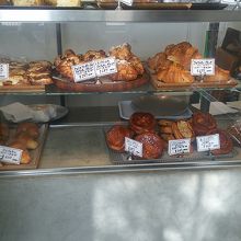 朝8:30頃お伺いしました。お店は狭く、パンは店員さんにお願いして取っていただくスタイル。