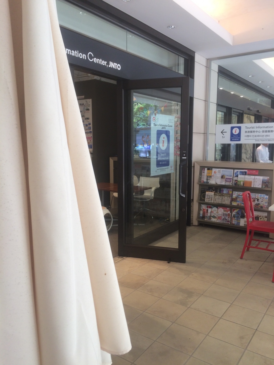 思ったより小さい観光局でした。中に入る手前には椅子とテーブルがあり、パンフレット、チラシを見ている外国の人がいました。案内カウンターには3人の案内人がいて、欧米系の人に説明していました。パンフレット類も他の観光案内所より少ないような気がしました。