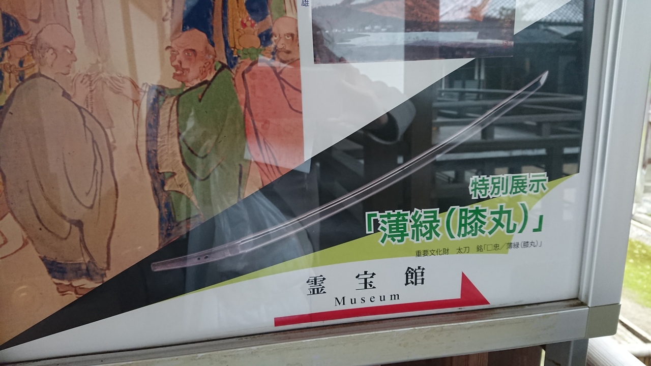 また、霊宝館では日本刀「膝丸」の展示もしていました。
