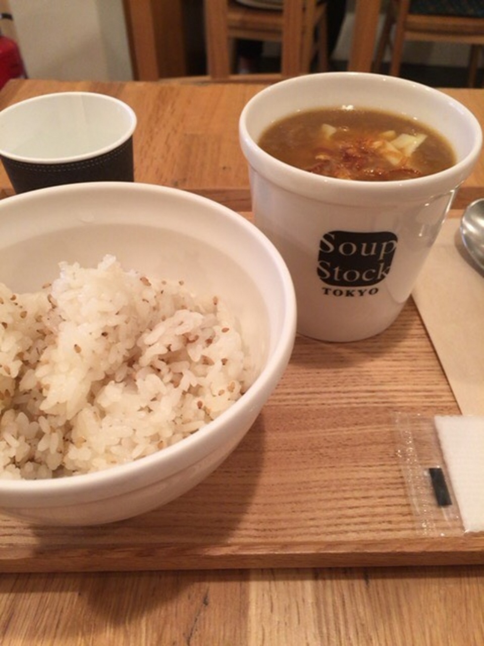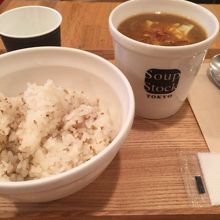 軽めのランチで利用しました。あまりお腹が空いていなかったのでスープと白胡麻ご飯がセットのものをオーダー。スープは色々あって迷いましたが、玉葱スープにしてみました。玉葱スープにはチーズが少し乗っていましたが、食べてみると玉葱とチーズが思ったより入っていて美味しかったです。