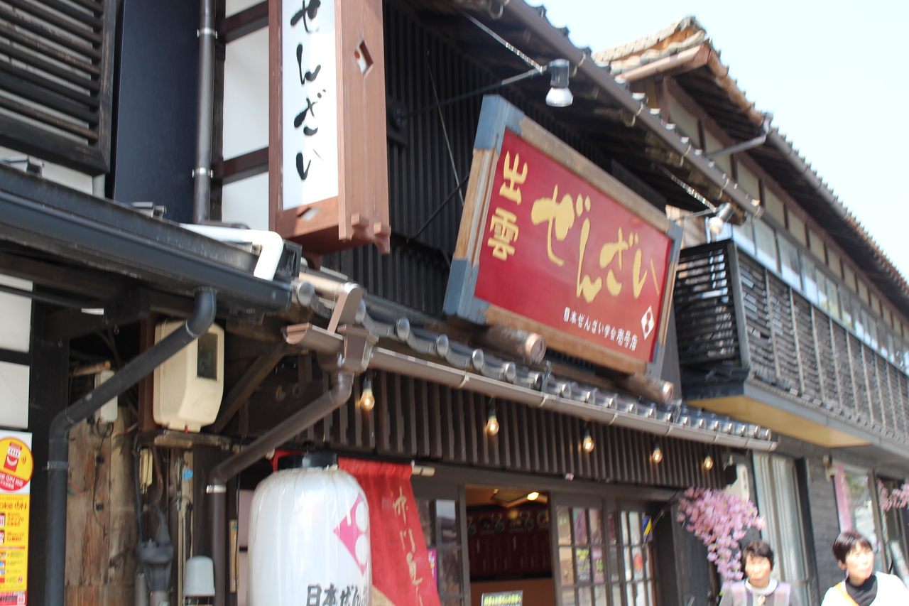 島根県の観光スポット、出雲大社の近くにあるお店です。勢溜の大鳥居から宇迦橋まで続く神門通りにあります。出雲ぜんざいの専門店です。ぜんざいは出雲からうまれたようです。紅白の白玉団子がモチモチで、小豆が上品な甘さでおいしかったです。