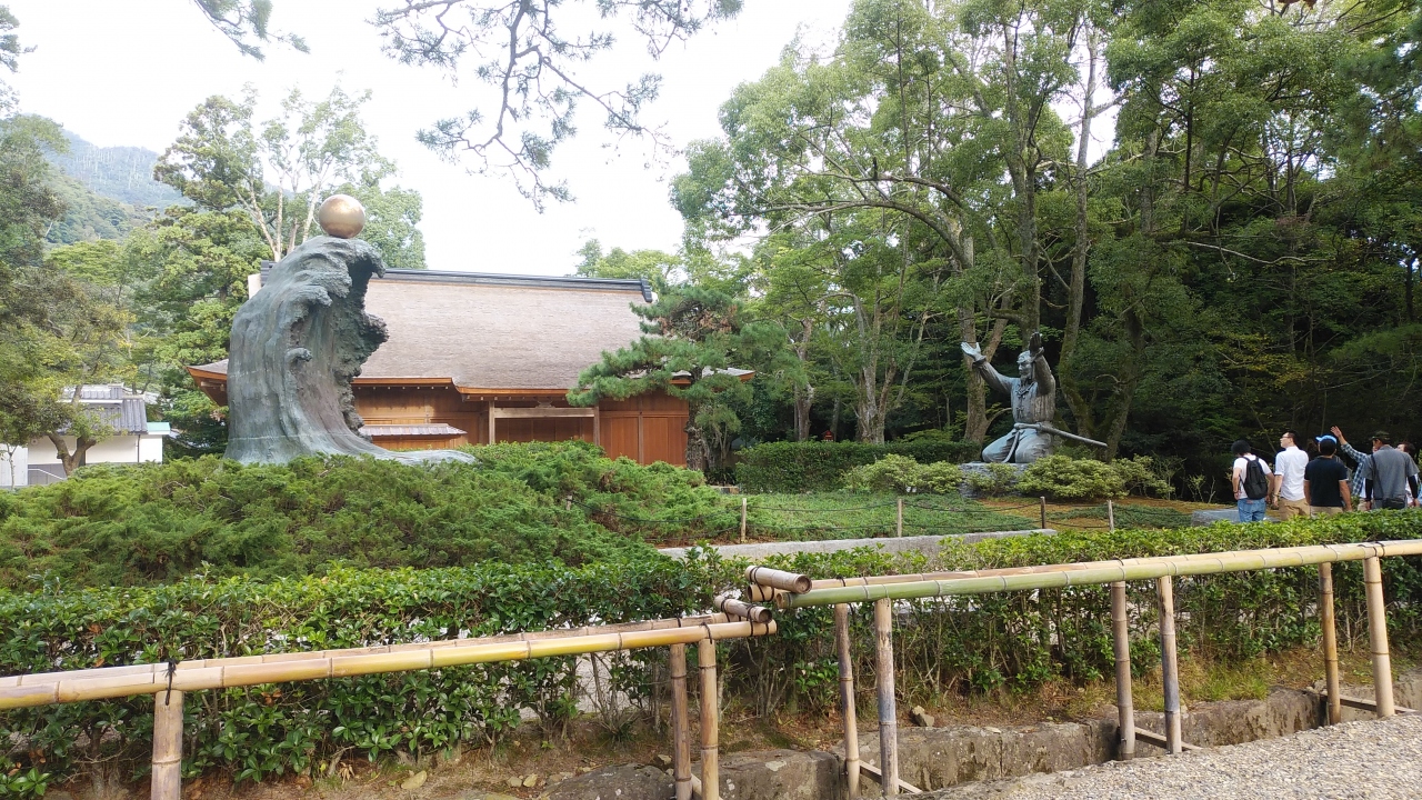 一畑薬師から日本海側を通り観光地の最後に訪問しました。10年前の「平成の大遷宮」以来です。日本有数のパワースポットとして知られ、あらゆる良縁に御利益がある縁結びの神様なのでカップルも多かったです。駐車場は広いのですが訪れるたびに若干待つ事が多いです。駐車場からの参拝でしたが入り口左に「さざれ石」があり直進すると神楽殿を参拝しました。何時来ても「大しめ縄」は素晴らしいです。2019年迄「平成の大遷宮」が続きますので境内の建物の修繕が進められていて6年毎(2018年7月)に一新されており「大しめ縄」は長さ13.m重さ4.5tもあり、真新しく壮観でした。その後右手にある御守所でおみくじを引き、本殿前の八足門で参拝すると、天皇陛下・宮家の神饌料の木札が立っていました。その後拝殿も参拝してから境内を散策し、結びの御神像や野見宿祢神社等を見て鳥居前の「ぜんざい餅」を食べて帰路に着くという有意義な一日でした。