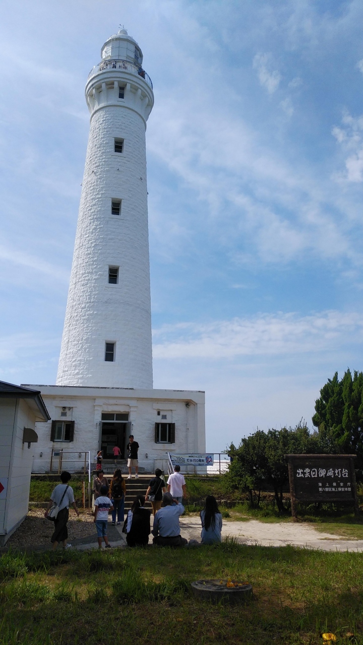 出雲についてすぐに一畑薬師を観光した後日本海側が見える国道23号線を通行したので途中の景色の絶景でした。ただし道路も絶景で狭く落ちると死は確実です。何回か訪れた事はありますが、何度訪れても良い場所です。灯台の高さは43m海面からは63mあり、美保関の硬質石で作られていて石積みの灯台では日本一だそうです。駐車場から灯台までの散策道にはお土産屋や食堂が沢山あり、灯台観光した後ミサキカフェという処で食事をしましたが、満席で若干待ちましたが、海の幸が美味しかったです。又灯台周辺には松林や遊歩道があり、奇岩「出雲松島」と呼ばれる景色も楽しんで見ることが出来て良かったです。