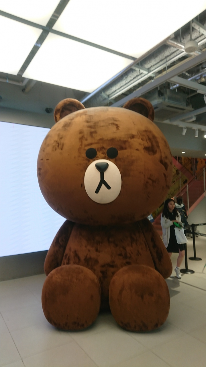 原宿にLINEのキャラクターショップがありました。立ち寄ると巨大なくまさんがデーンと鎮座。記念写真スポットでもあるようです。キャラクターのグッズやお菓子などがたくさんあり、LINEのキャラクターが好きな人には面白いかなと思います。後、買い物袋がなかなかよいので、レジ袋が欲しいと思いました。