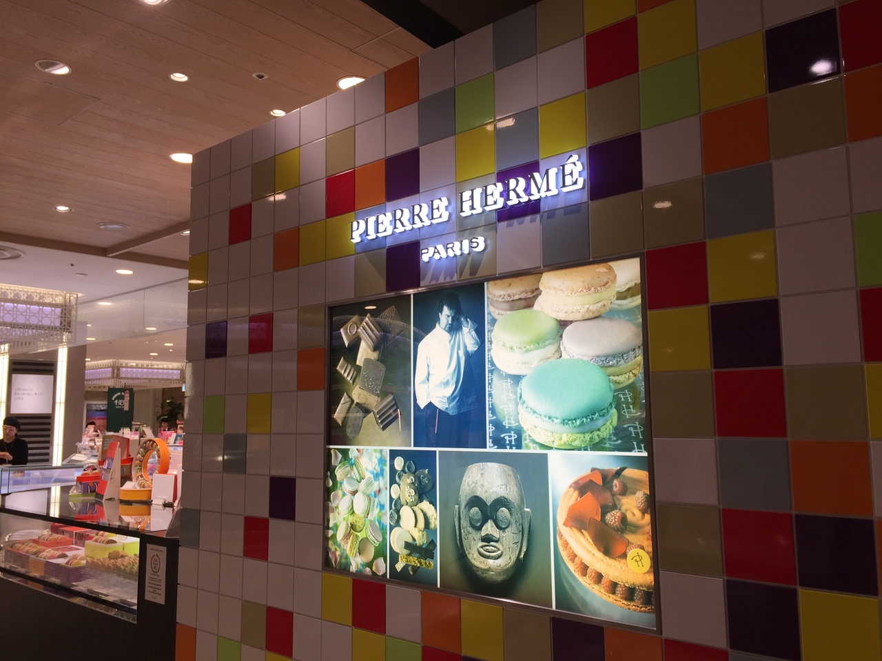 渋谷ヒカリエ地下2階にあるマカロンで有名なピエール・エルメ・パリさん。壁はカラフルな色のペイントでオシャレです。スイーツも とてもカラフルで芸術品のようです。価格が価格だけに、失敗したくないので いつも定番ばかり買ってしまいます。