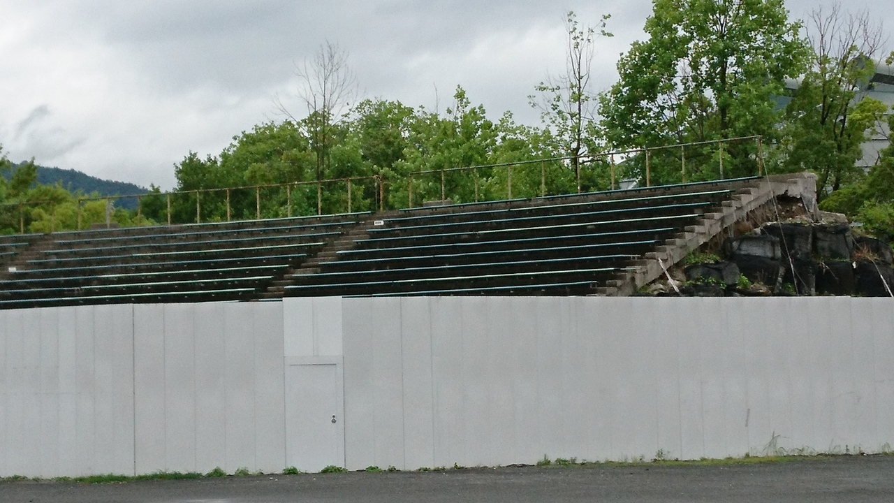 旧広島市民球場跡地にはスタンドの一部が残されています。
