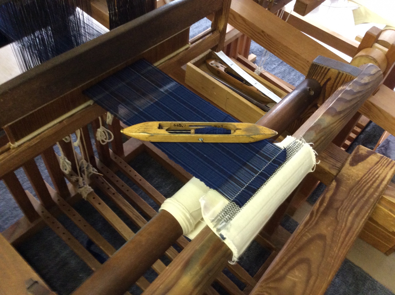 アメリカの姪が、BFと初めて母の国日本訪問。下宿に糸巻き器を持っていることから、松阪木綿織りたいと聞いたら、したいと言ったので、予約。一人千数百円。1時間くらいで10センチ余を織る。3種類くらいから選ぶ。こんなことが好きな姪なので、筋はいいらしく、すぐ覚えて楽しそう。まあ、初めての母の生まれた街で楽しんだようだ。事前予約はしておいた方がいい。