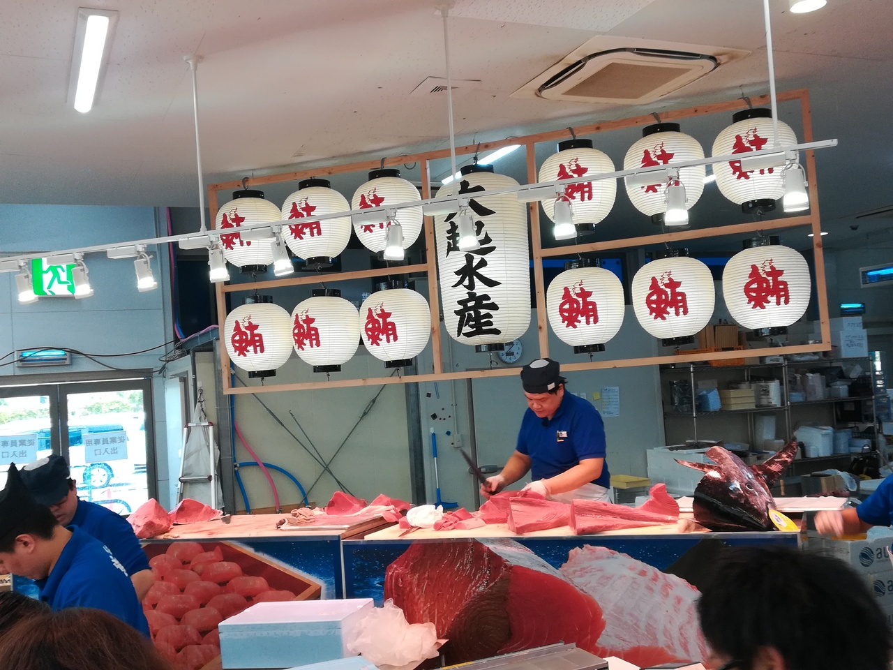 お刺身やお寿司を買うならここがオススメです。やはりスーパーより新鮮!マグロも解体して捌きたてのを売ってます。マグロ売り場の前は、マグロ争奪戦です!手作りのだし巻きや、お惣菜もたくさん売っているので、手巻き寿司パーティーの準備はここで揃います!魚市場の横に、パンや酒屋など、魚以外のお店もあるので、色々と買い物できますよー!敷地の中に大起水産と焼肉もあるので、ご飯も食べられます。