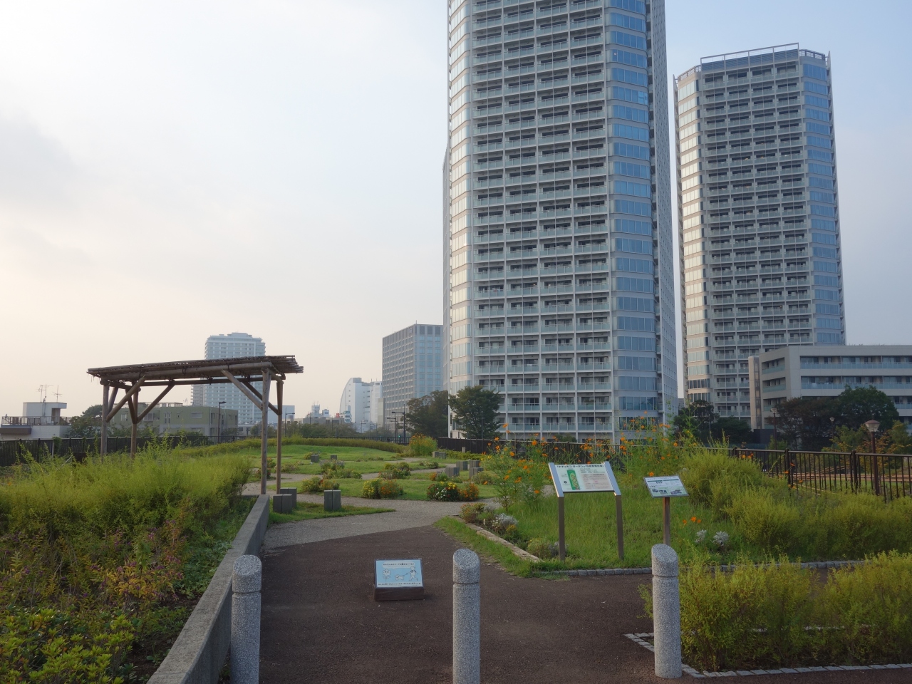 二子玉川の駅を降りて,ライズを通りぬけた先に公園があります。それが,この公園。むかしはなにがあったのか思い出せませんが,多摩川の堤の通りの一本陸側にできた公園です。一角に和風の庭園もあります。多摩川の堤防を散歩する起点にもなります。マイナス点はそばに高層のマンションが立っていて,見下される雰囲気でしょうか。でも,いい公園です,。