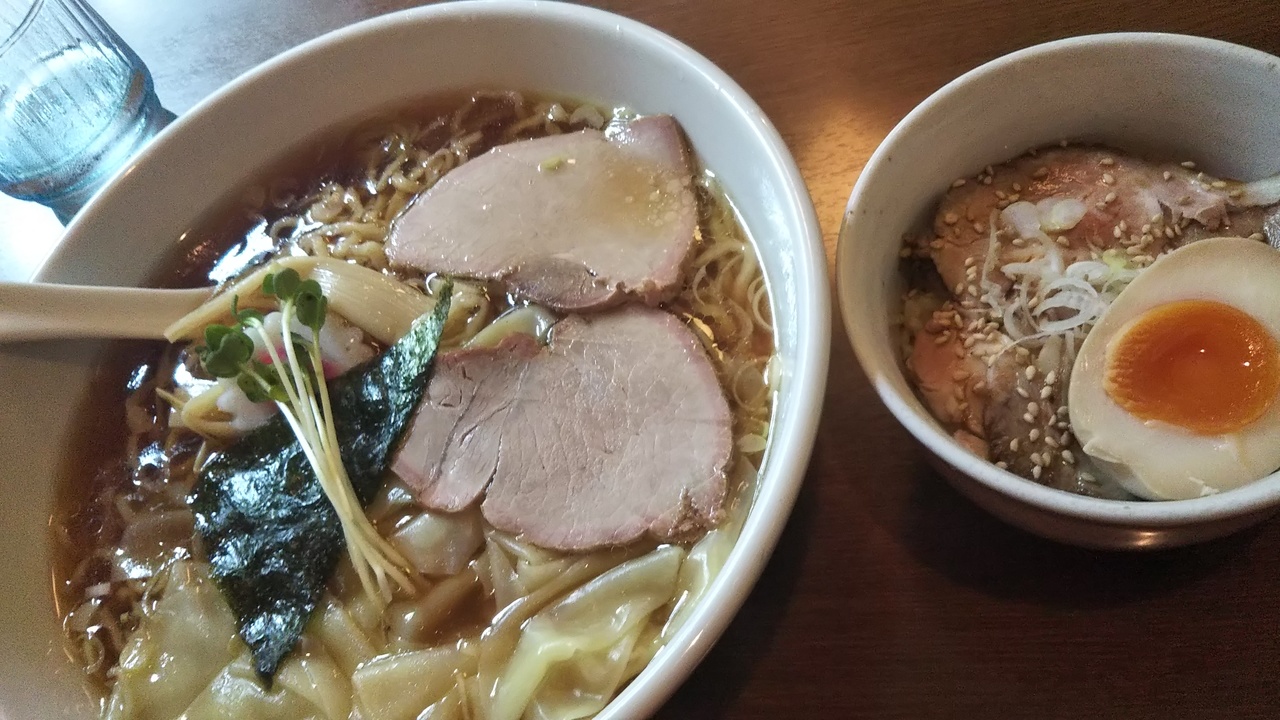 ラーメンのスープは醤油ベースのシンプルなものであっさりとていますが、麺やチャーシュー、ワンタンとも良く合って美味しく頂くことができました。