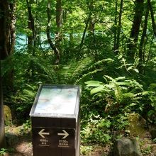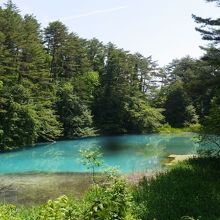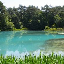 五色沼の中では小さめだが、鮮やかなエメラルドグリーンのような色彩が見事だった。