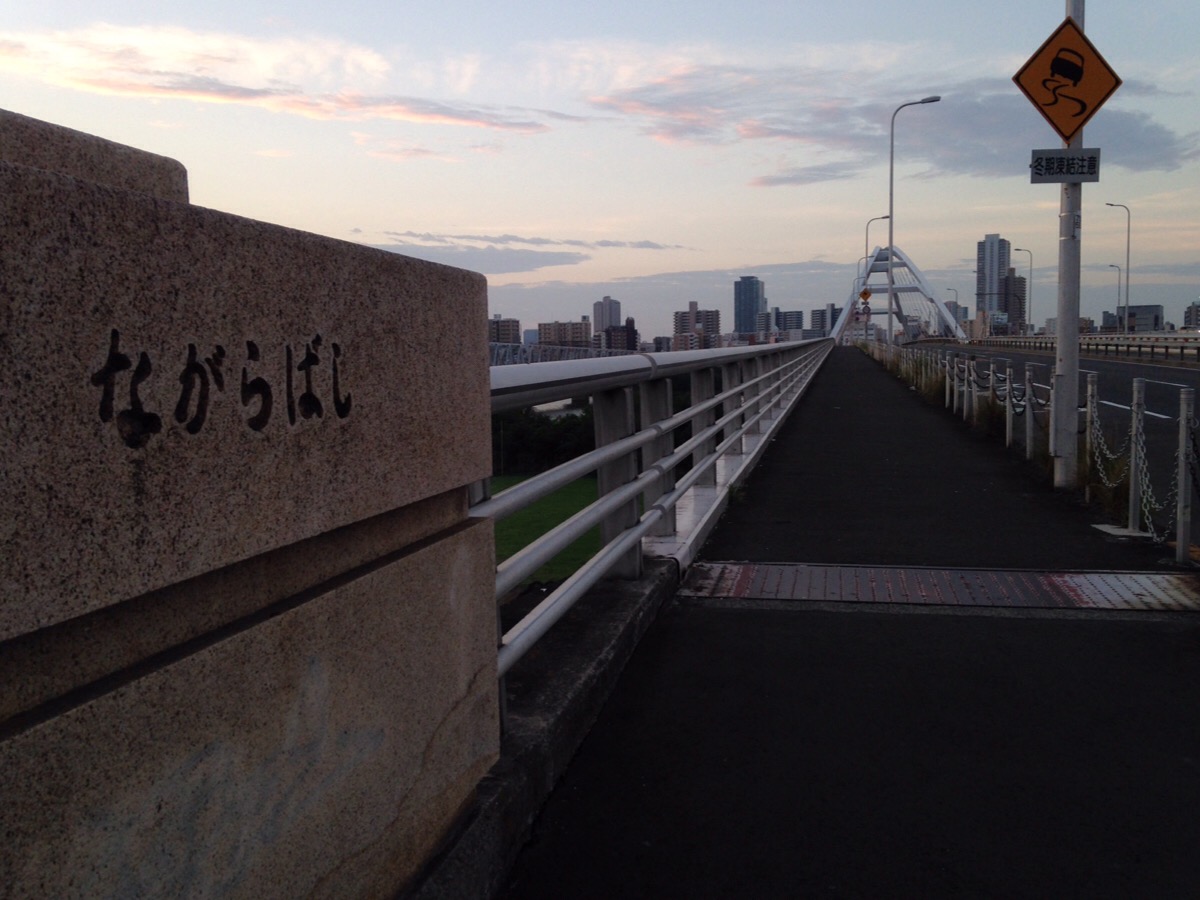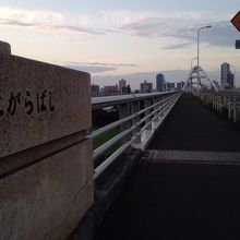 水道記念館の近くから淀川を渡る自動車と歩行者用の橋です。