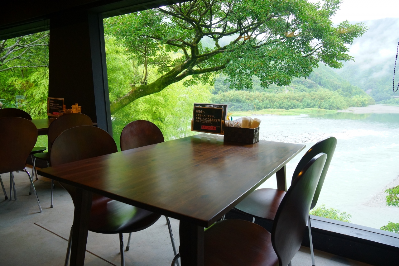 仁淀川沿いにあり、屋内席からもテラス席からも絶景が楽しめます!