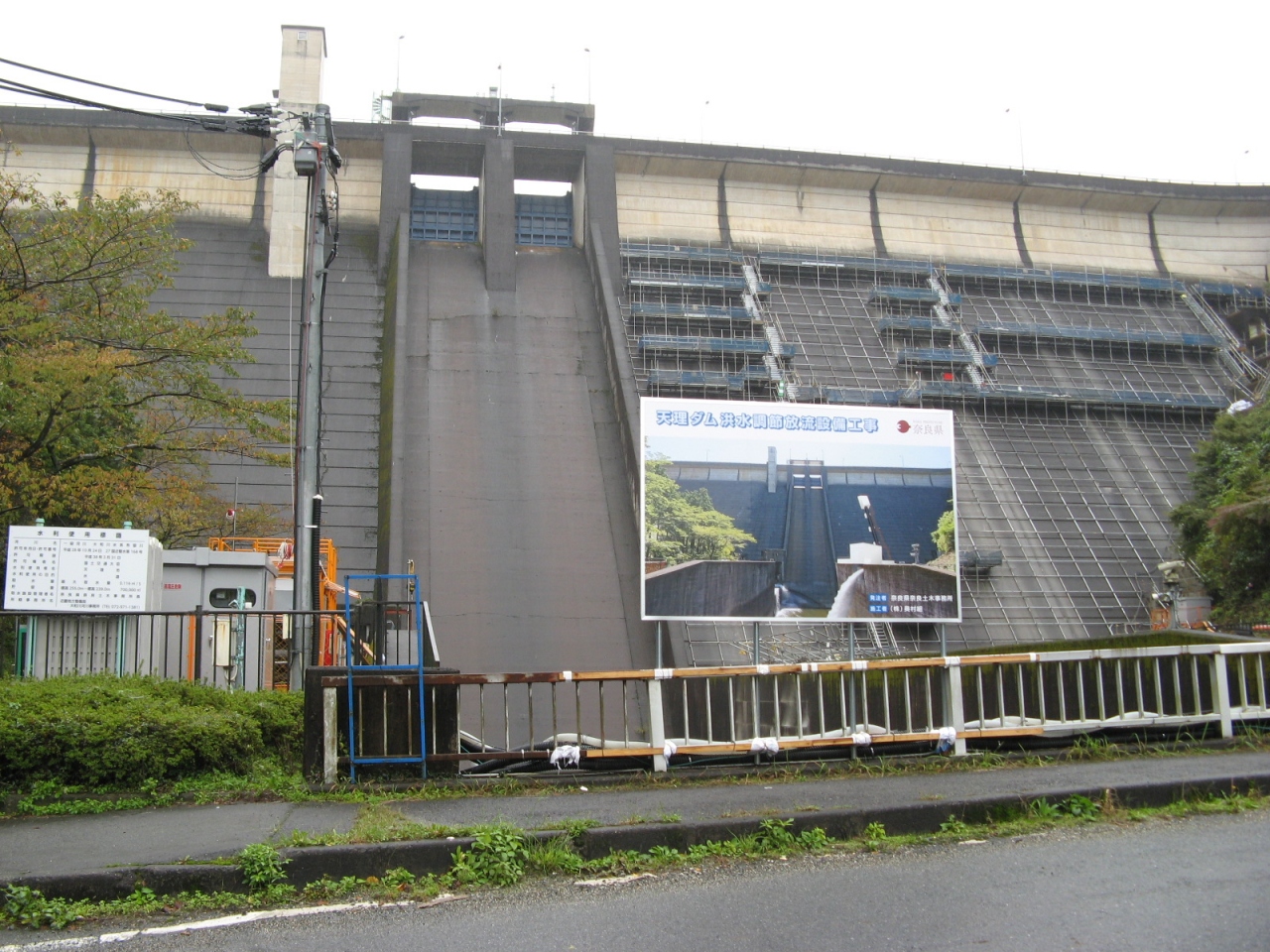 大和青垣国定公園にある“天理ダム”を見学してきました。天理ダムは洪水調節、不特定利水、上水道を目的とした、堤高60.5m、堤頂長210mの重力式コンクリートダムです。
