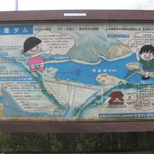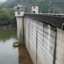 竣工が1978年と比較的古く、非常用洪水吐にクレスト式のローラーゲート2門、洪水調節用コンジットゲート1門を装備しており、運用開始から40年ほど経っているため堤体は古びており、訪れたときは洪水放流設備工事をやっていました。