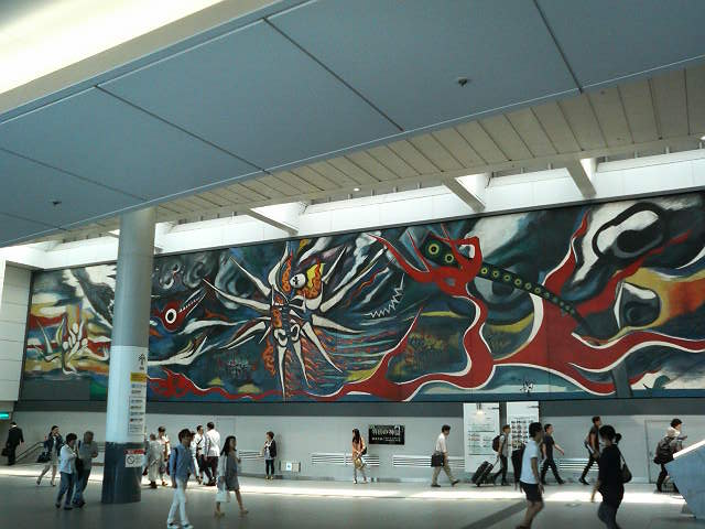 あの岡本太郎氏の作品だそうで、横長のキャンパスを一杯に使ったスケール感や、中央に位置する物々しい生物など独特の迫力があり、つい足を止めて見入ってしまう魅力がありました。