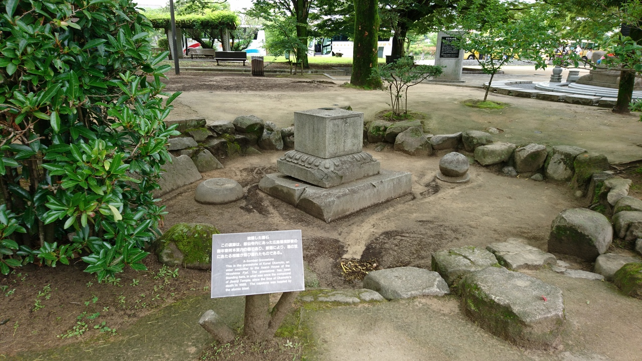慈仙寺にあったこちらの広島藩浅野家御年寄の岡本宮内の墓石は爆心地から約200mのところ。