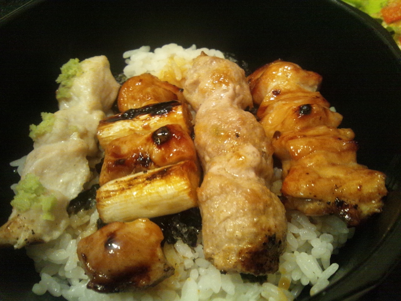 迷いましたが、軍鶏の焼き鳥(串焼き)をご飯の上に載せた「焼鶏丼」(1230円)を注文しました。