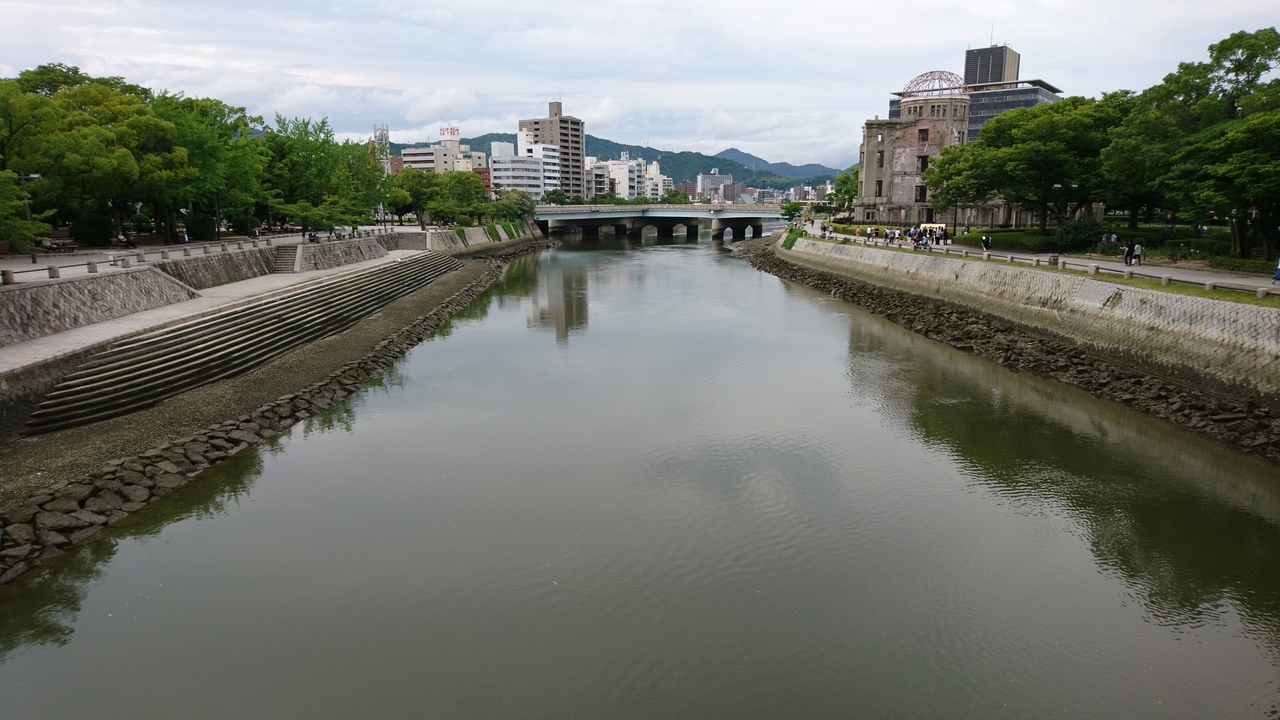 8月6日夜には犠牲者を弔う灯籠流しがおこなわれるところはこの河川です。