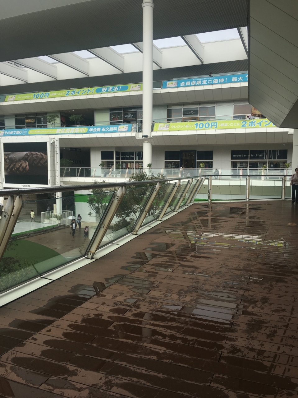 この日は台風が向かってきている日でしたが、屋根が付いていてほぼ屋内から出ずに利用できるためかなり混んでいました。フードコート内は席とりが大変なので大人数で利用を考えている方は時間をずらしたほうが安全です。