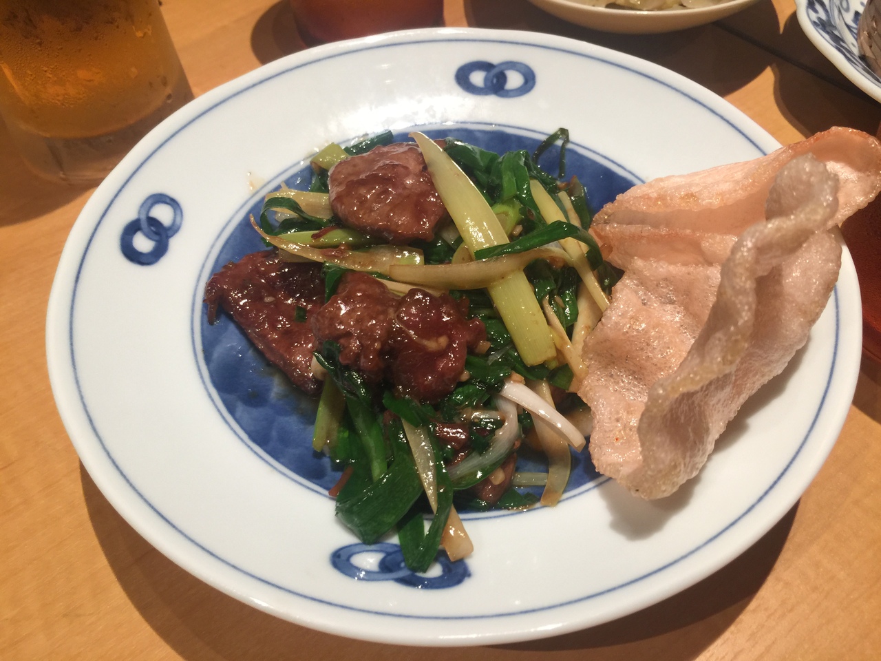 ザーサイ、レバニラ、パーコー、、、生ビールと麒麟山で、、、