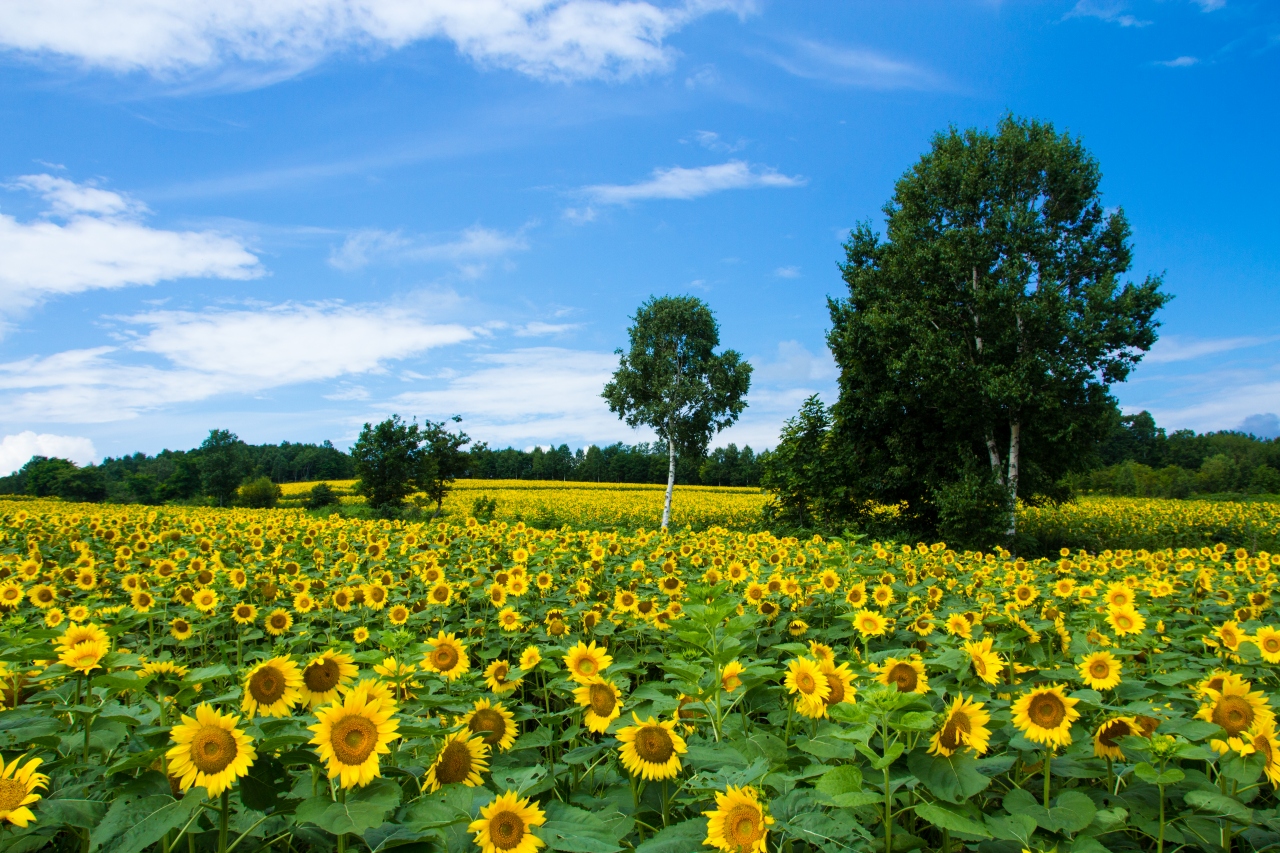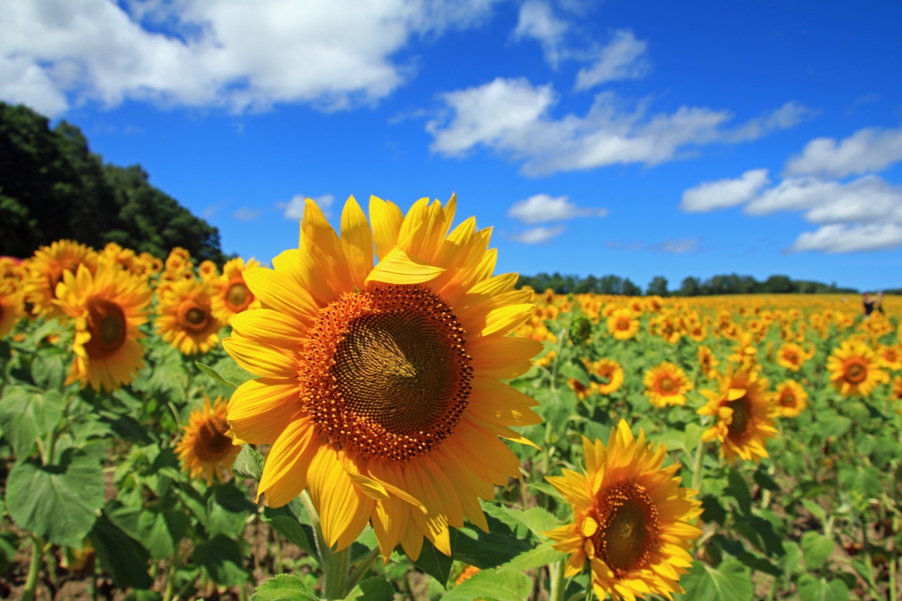 日本一の広さを誇るひまわり畑ですが、さすがにこの期間全て満開というわけではなく、区画ごとに順次咲いていきます。