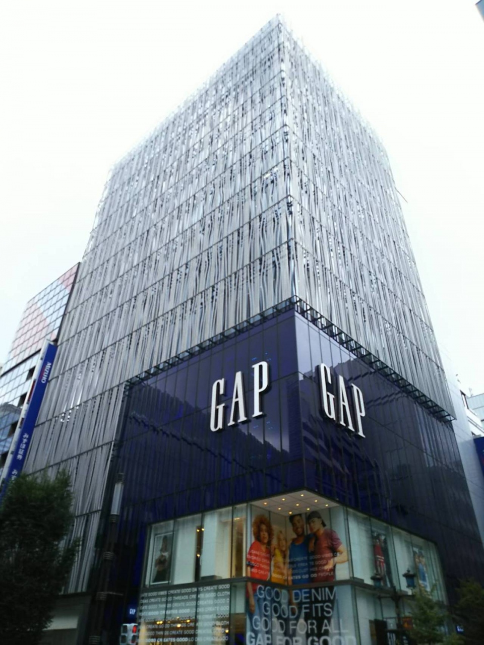 晴海通り(銀座)沿いにあるGAPの大型店です。カジュアルファッションブランドの中でも好きなブランドのショップだけに銀座に行く度に立ち寄ります。店内は品揃えが充実しており、お手頃な値段で洋服の上下を買うことができるのでおすすめのブランドです。